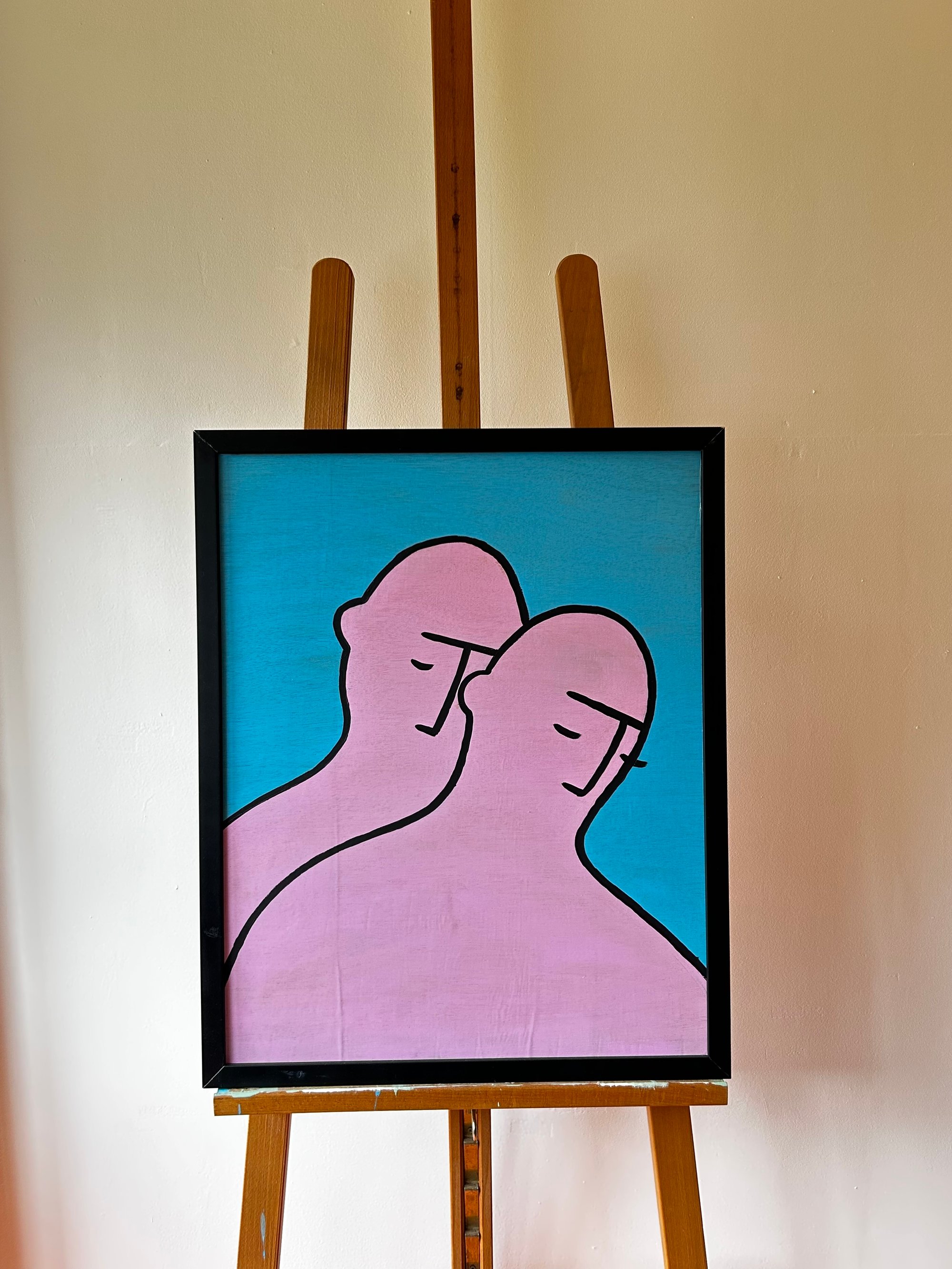 Acyclic on ply wood with black wood frame